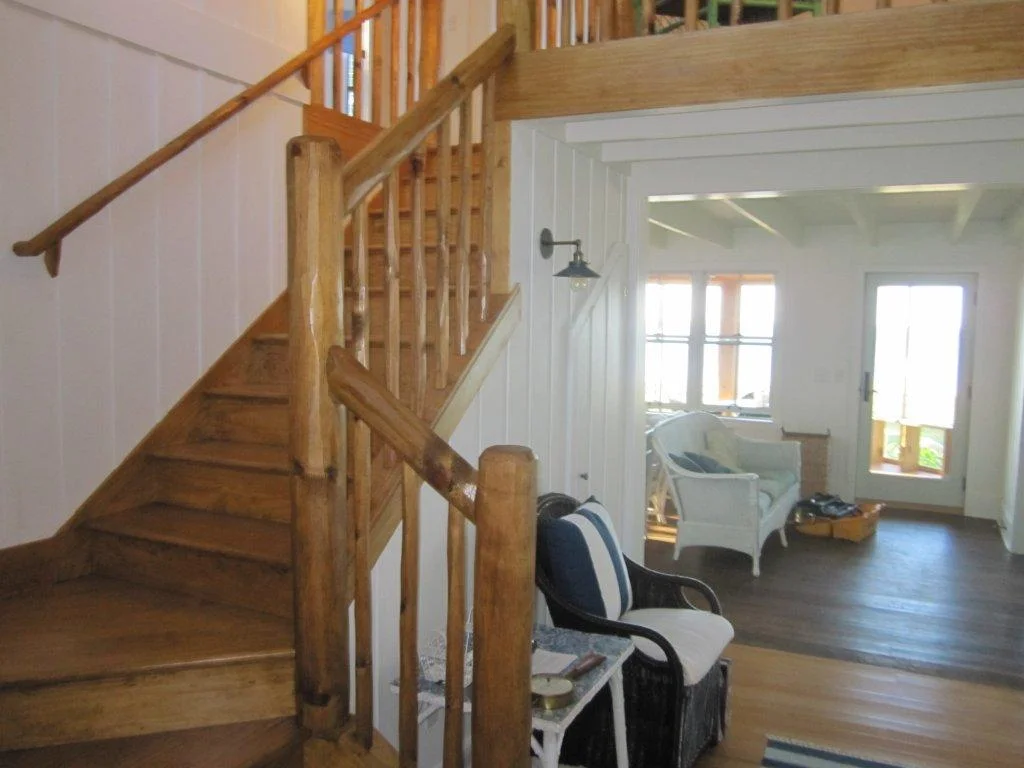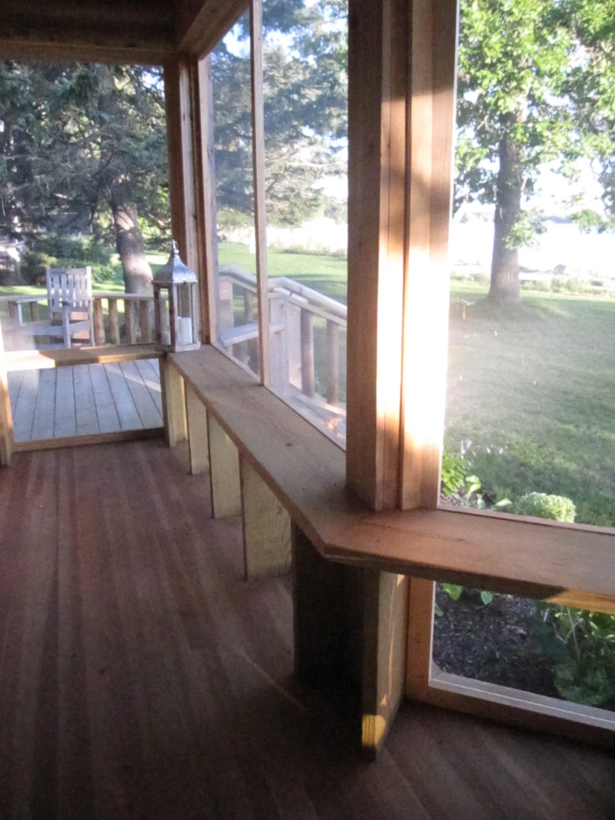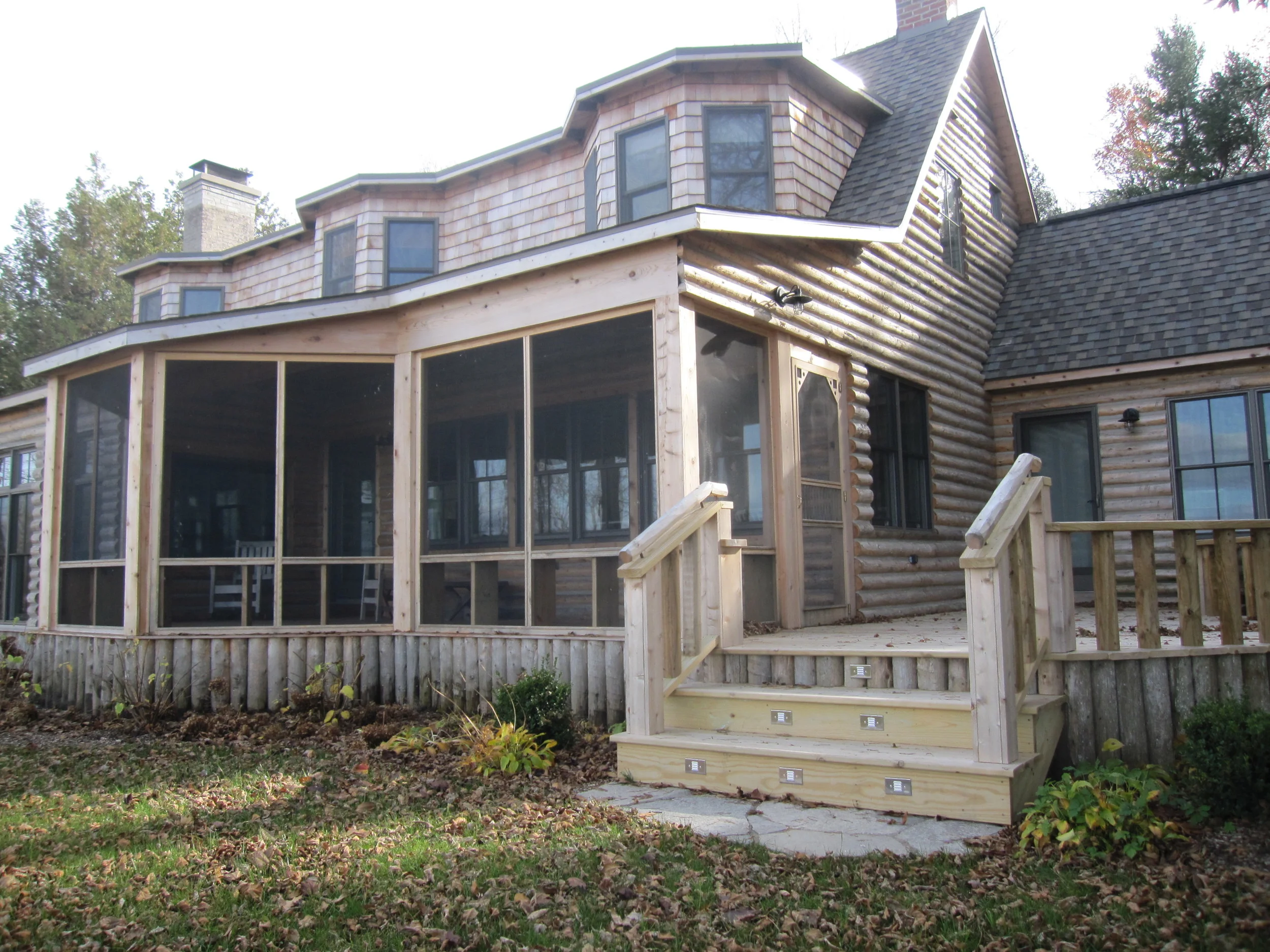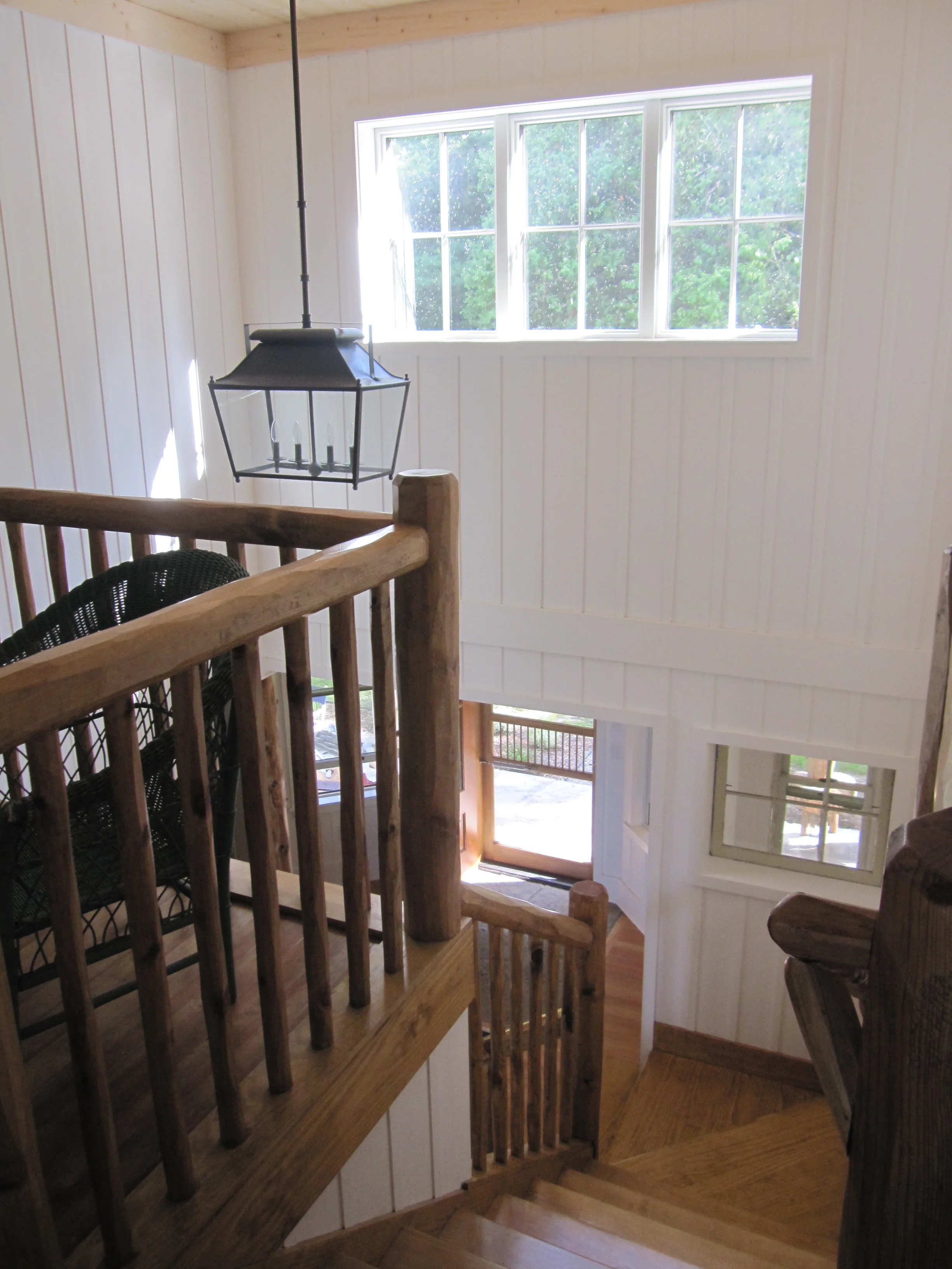 This beautiful and serene modern kitchen was transformed from the image below. The owner's wanted the exterior to stay intact as part of the remodel. The large island houses pot and pan storage, beverage coolers, produce cooler, prep sink and a pop up outlet for appliances.